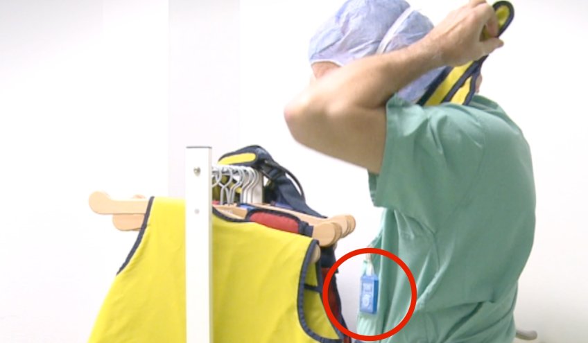 Die von der Personendosismessstelle ausgegebenen Dosimeter sind an einem repräsentativen Ort am Körper zu tragen und in der Regel monatlich zu wechseln und auszuwerten.